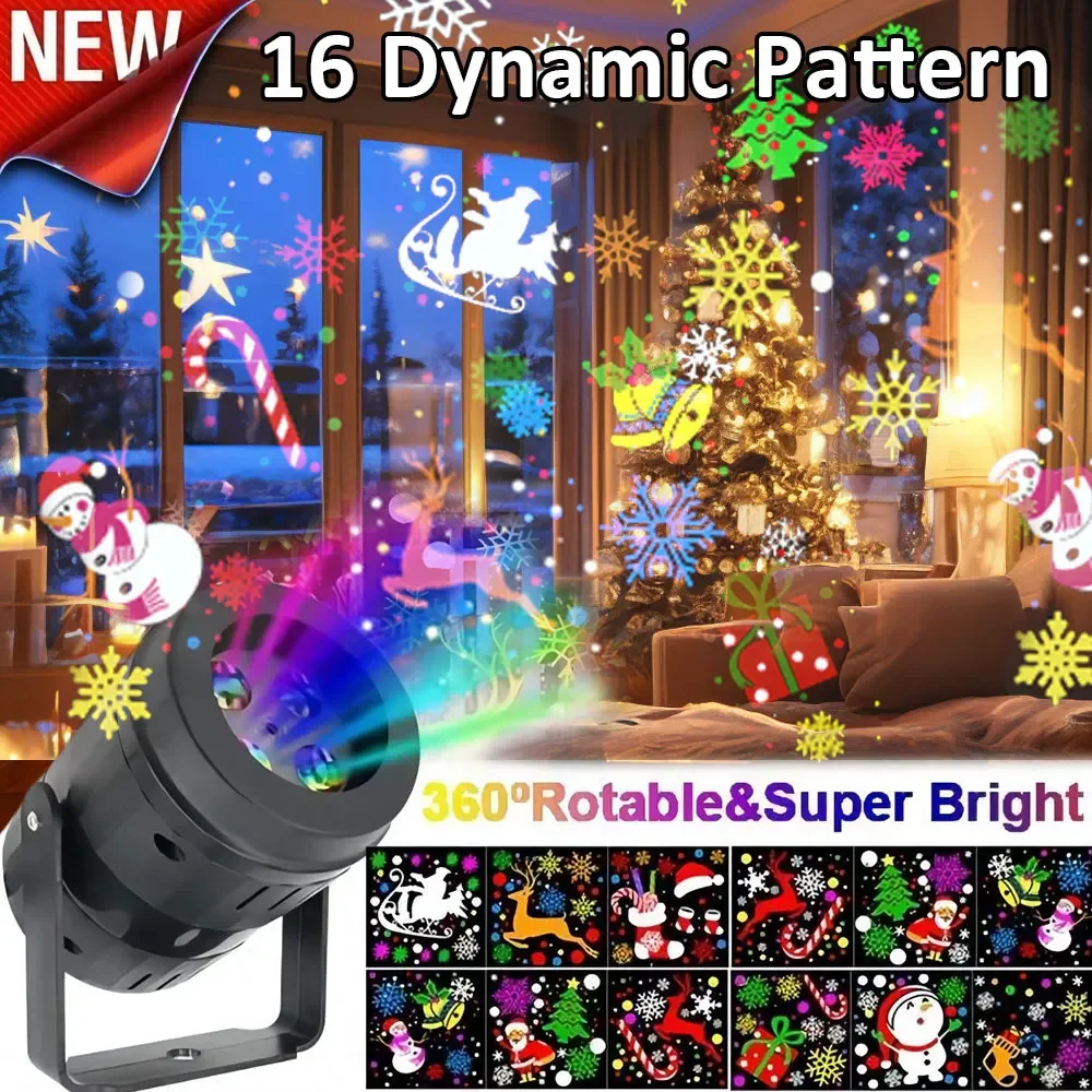 16 Patterns Christmas Projector Lights Rotatable Christmas Decoration Outdoor/Indoor Led Projector for Holiday Party Xmas Decor